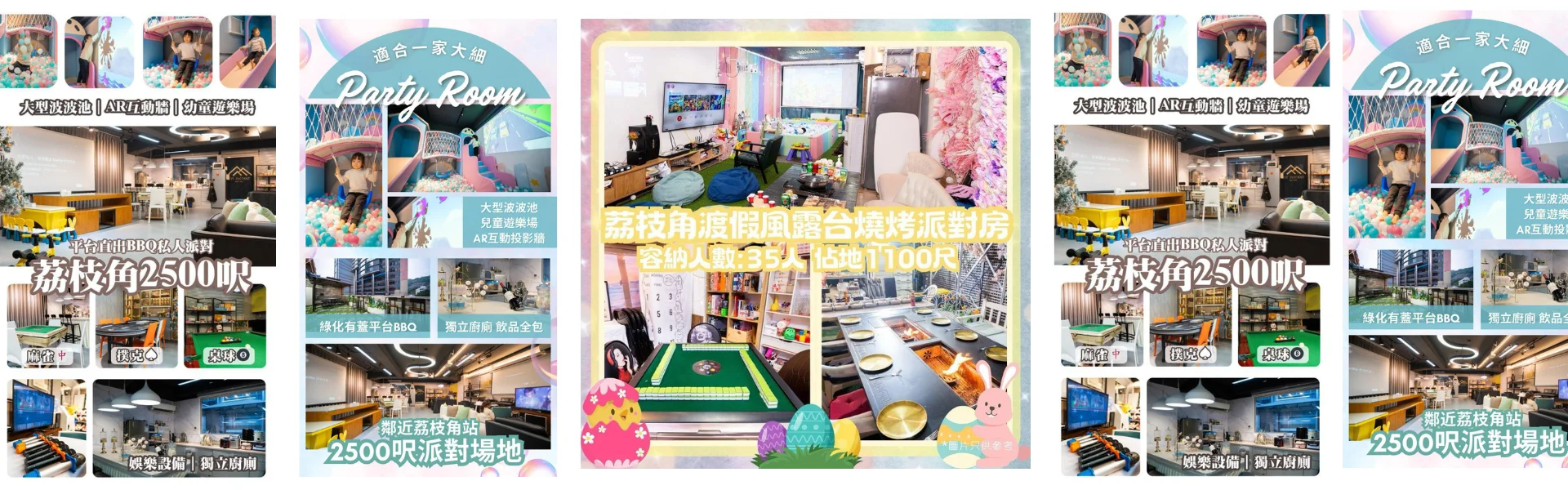 香港特別行政區(多區 Party Room 預約制服務;場地分佈於荔枝角、旺角、觀塘、九龍灣、葵興、長沙灣等,詳細街址於預約確認後提供。)